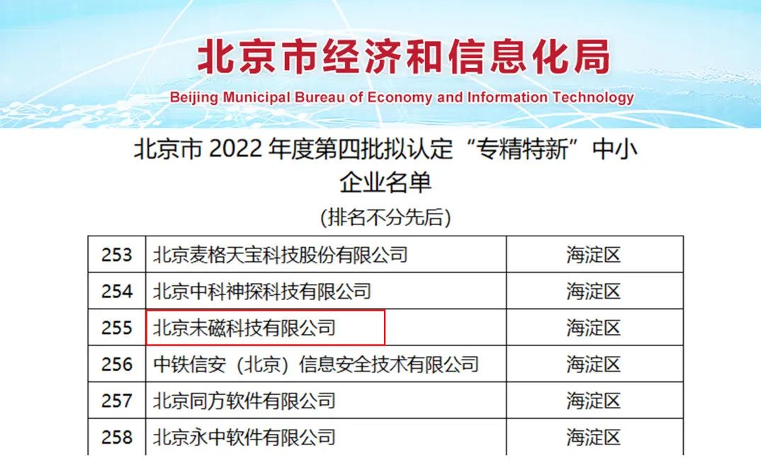 获权威认可,未磁科技入选北京市“专精特新”中小企业名单